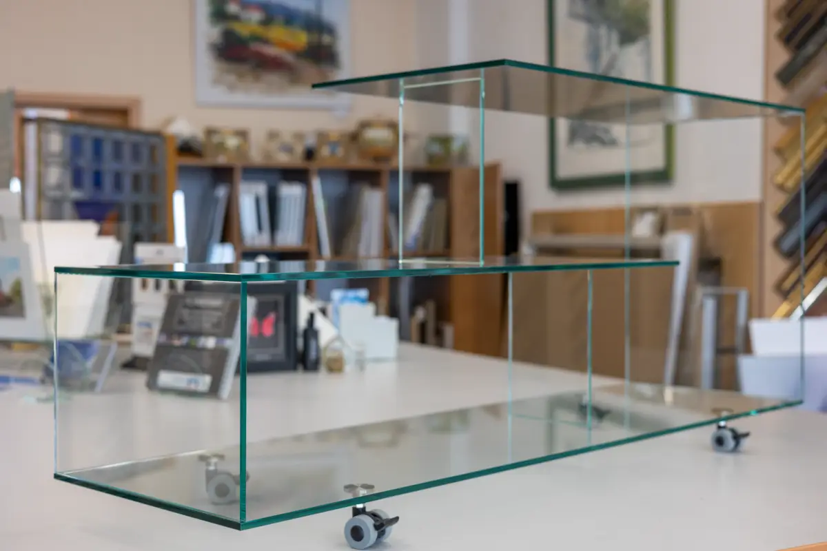 Alle Arbeiten werden direkt in unserer Werkstatt in Wilhelmshaven gefertigt. Dadurch können wir individuelle Wünsche umsetzen – egal ob Verglasungen, Bildereinrahmungen oder Sandstrahlarbeiten auf Glas.